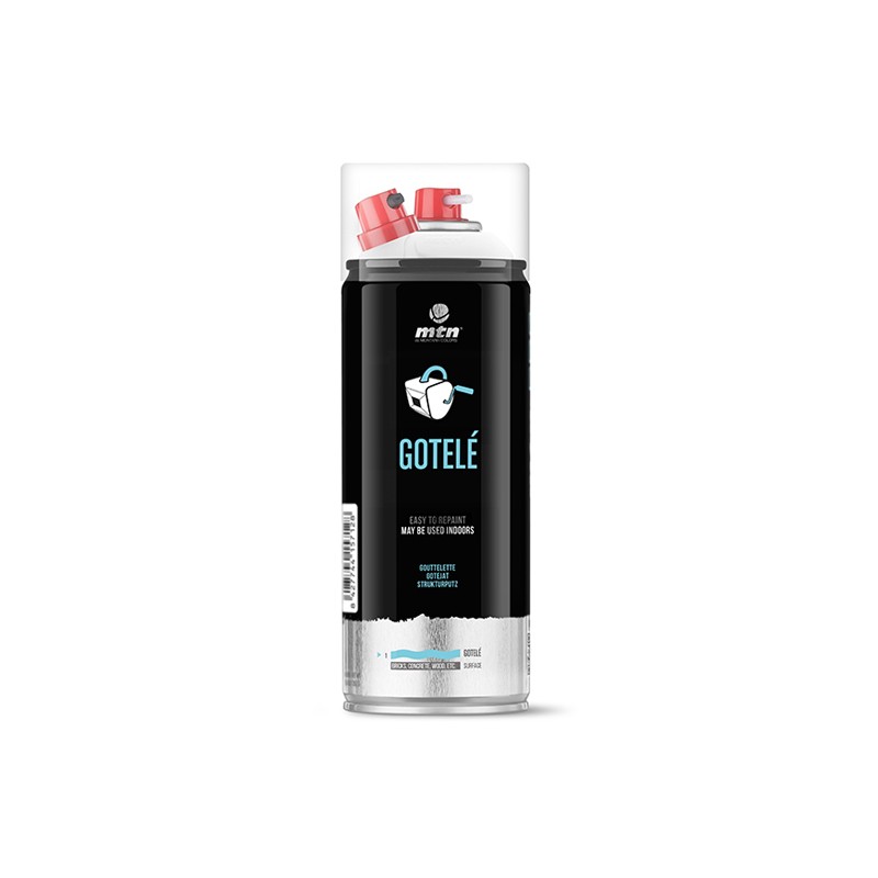 El MTN PRO Gotelé es una pintura formulada a base de una exclusiva dispersión de poliuretano, que imita de forma fácil y sencilla la estructura del gotelé (técnica decorativa que imita las gotas de la lluvia en el cristal).