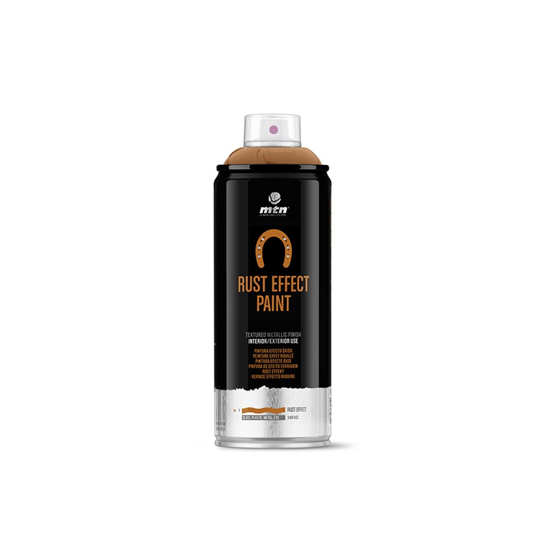 Pintura Efecto Óxido 400 ml Pintura decorativa de acabado metálico texturizado con efecto óxido. El MTN PRO Pintura Efecto Óxido es una pintura acrílica decorativa texturizada, de secado rápido, con una apariencia de metal oxidado a todo tipo de superficies. Su resultado es ideal para conseguir un aspecto añejo en decoraciones domésticas, manualidades y proyectos en jardines o comercios.